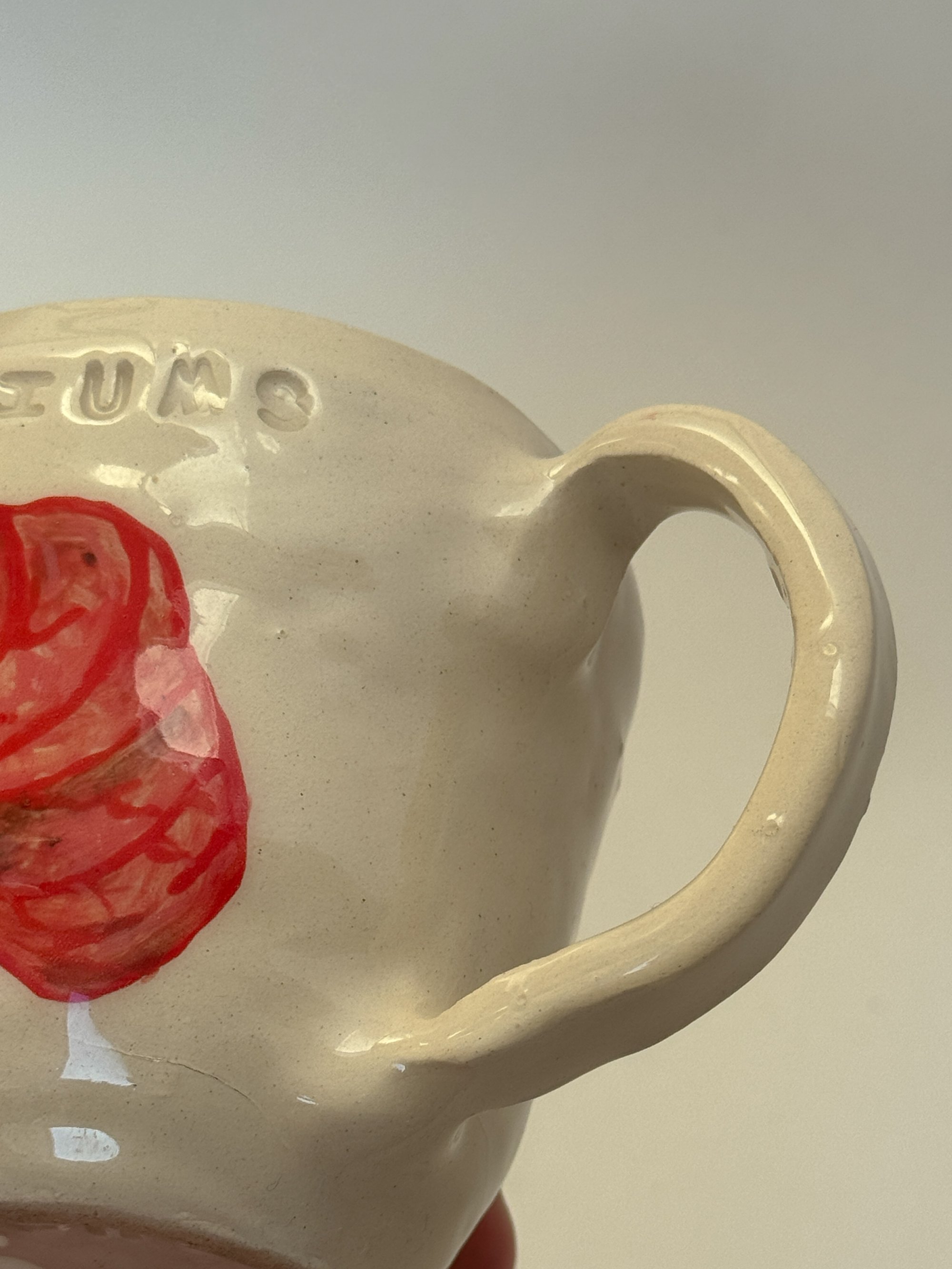 Handmade earthenware ceramic mug featuring anthurium-flower detailing. Each piece is wheel-thrown and hand-sculpted, giving every mug its own unique character and organic charm.