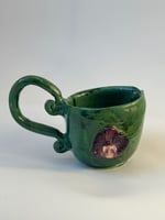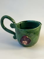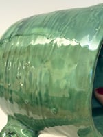 This jug was an experimental piece , trying out a new glaze ! Unfortunately it didn't quite go as i had hoped and some small glaze pieces flaked off , which have been colour matched with paint ! Therefore this piece is no longer waterproof or food safe - so ,this can be used for jewellery , trinkets , dry flowers etc, instead !